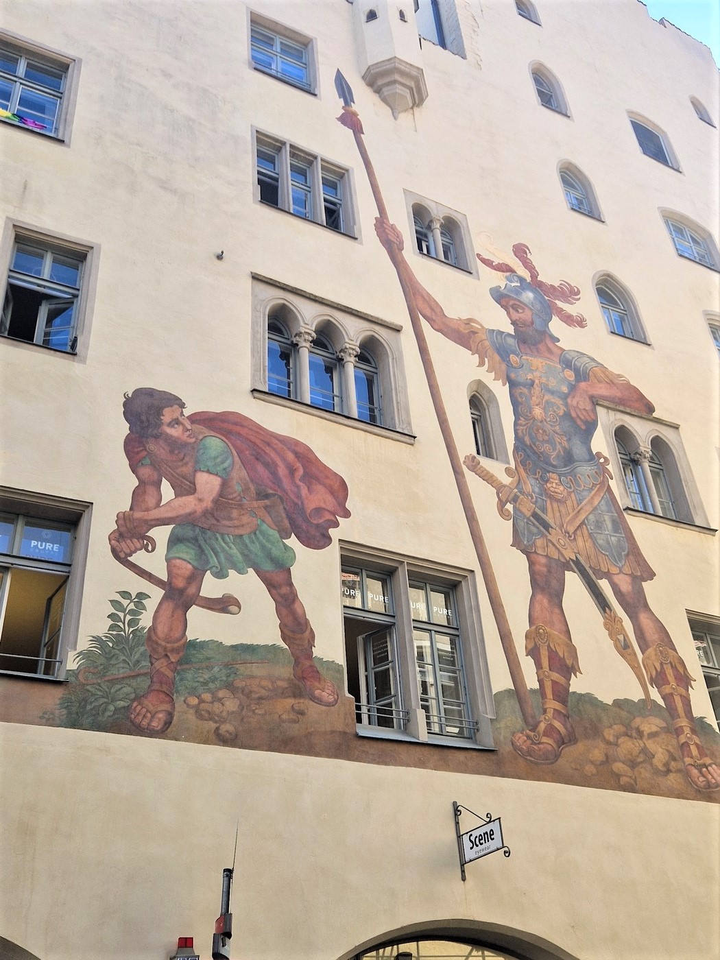In the heart of the old town stands the Goliathhaus, a grand building whose façade bears a striking mural of David and Goliath. First painted in the 16th century and later restored, it vividly depicts the biblical scene of the young shepherd facing the towering giant; one of Regensburg’s most photographed landmarks.