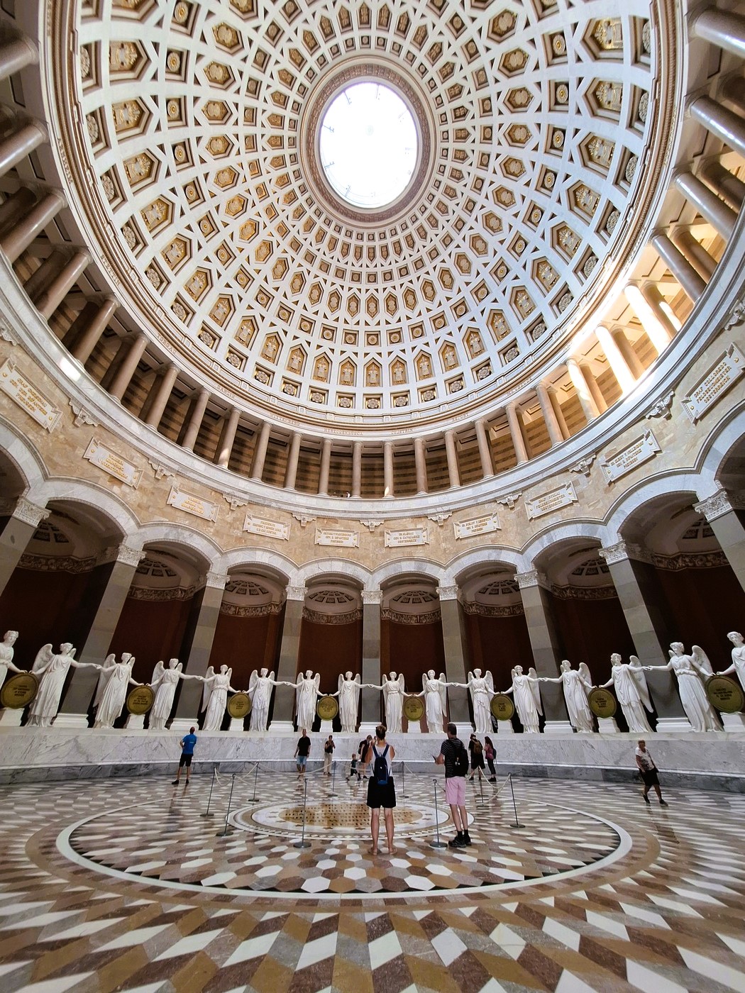 Walking inside, you immediately feel the impact of its scale. The soaring walls and perfect symmetry make you aware of your own smallness, as if the monument itself is quietly reminding you of the ambition and strength of those who built it. Inside the 18-sided rotunda, 34 marble figures of winged Victories encircle the hall, standing between bronze shields cast from captured French cannons. From the outside terrace, the view across Kelheim and the Danube valley was simply breathtaking.