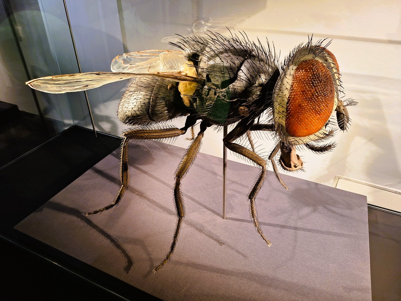 The live exhibits were especially engaging: terrariums with mantises and other insects, and even a working bee-hive, where bees buzzed in and out through a small wall opening — a clever and educational touch.
