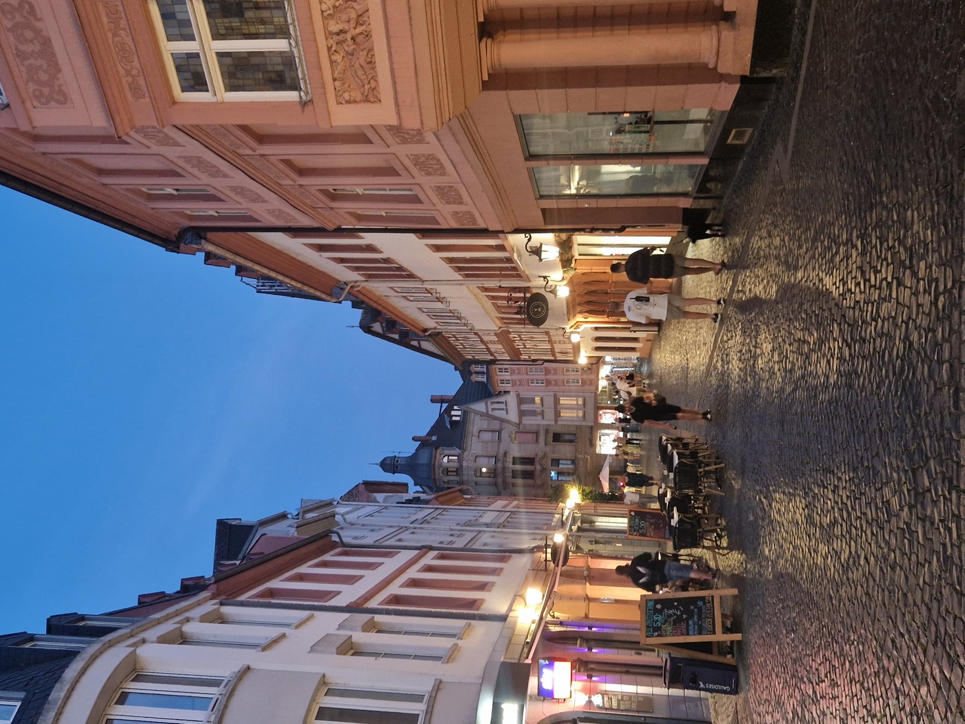 After a late lunch near the hotel, we took a short rest before heading out for an evening walk. Mainz’s Altstadt (Old Town) is full of character, with narrow lanes, small boutiques, and a relaxed local atmosphere. We reached Gutenbergplatz, the lively square in front of the State Theatre, just a few minutes from the cathedral. The area was buzzing with life — cafés filled with people, conversations spilling into the streets, and the air rich with the smell of food.